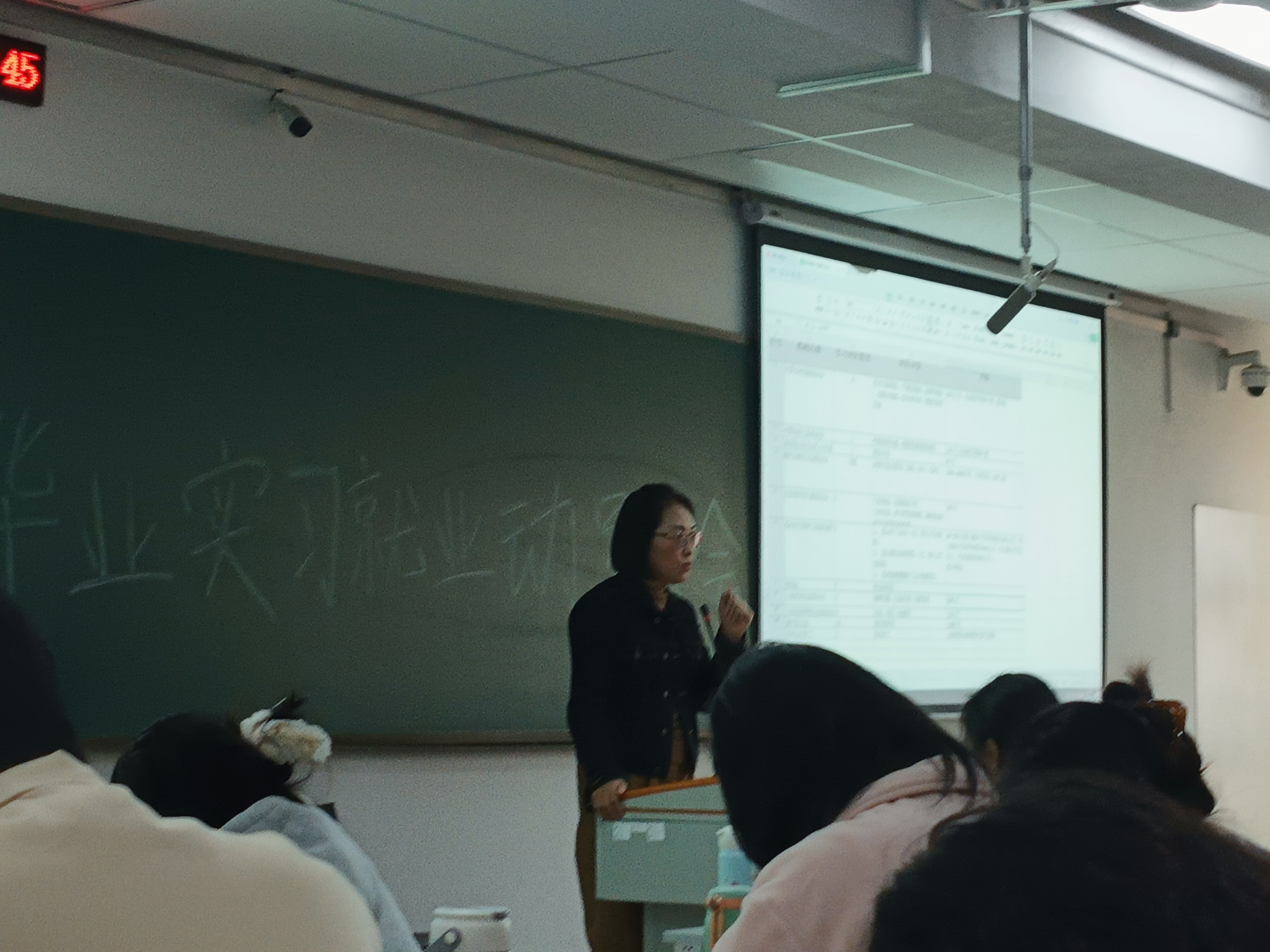 范如意老师明确,毕业实习是上下学期各2学分的专业必修课,不仅是理论落地为实践的“转化器”,更能填补企业与社会组织对实操能力的需求缺口,直接提升就业竞争力。在资源分布上,她介绍了北京、江苏、上海、广东等地的优质岗位,并鼓励学生“跳出短期地域成本的顾虑,看重实习经历对长期职业发展的价值”。在执行规范上,实习将分两阶段推进——11月启动专业综合实习,次年年后启动毕业就业实习,直至次年4月中旬返校,期间需填写2本实习记录本,每日记录工作与反思。后期返校时同步提交记录本、机构评语与介绍信回执,同时提及学院为每位同学配备了毕业实习与就业指导老师,同学们有问题可随时与自己的指导老师沟通。