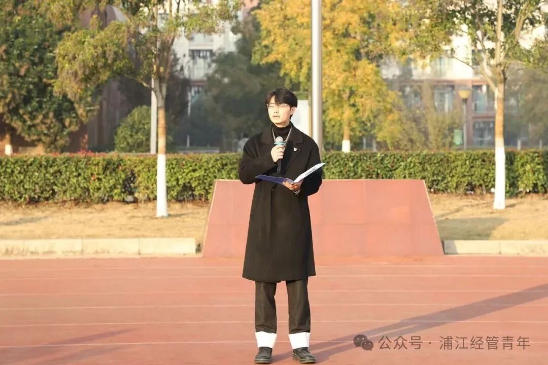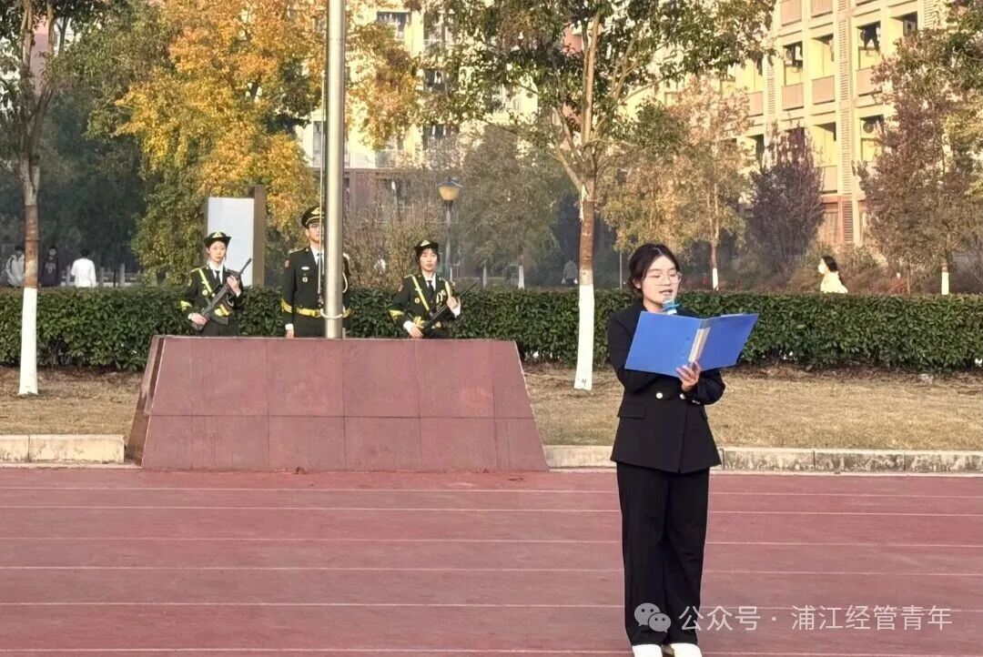 为纪念中国人民抗日战争暨世界反法西斯战争胜利80周年,厚植爱国情怀,传承红色基因,引导学子以昂扬之态担时代之责,用青春力量谱写报国新篇。南京工业大学浦江学院经济与管理学院联合校国旗护卫队,于2025年11月24日清晨举行"八十载峥嵘岁月,新征程砥砺前行"主题升旗仪式。本次主题升旗仪式由25行管01班贾书桐同学主持。